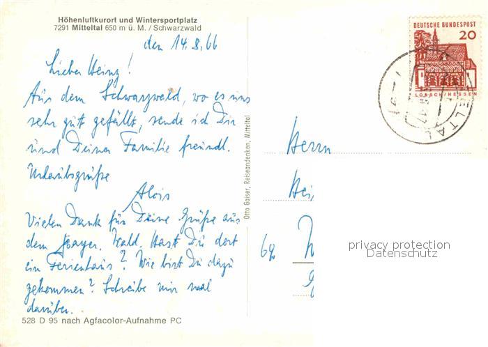 72865342 alte Postkarte Mitteltal Schwarzwald Panorama Hoehenluftkurort und Wintersportplatz postalisch gelaufen Erhaltung siehe scans [FriedD77] KatCode: 11110008237004