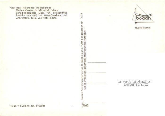 73632888 Mittelzell Reichenau Marienmuenster Benediktinerabtei Basilika mit West Querhaus und wehrhaftem Turm Fliegeraufnahme postalisch nicht gelaufen Erhaltung siehe scans [WerneD78] KatCode: 11110008335066