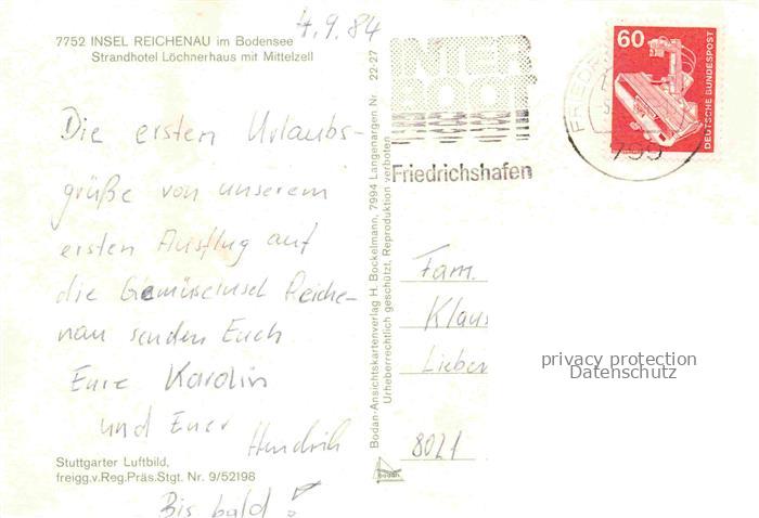 74022490 alte Postkarte Mittelzell Strandhotel Loechnerhaus postalisch gelaufen Fliegeraufnahme Erhaltung siehe scans [FriedD77] KatCode: 11110008335066