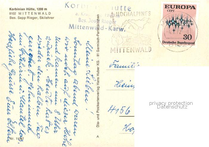 73124196 alte Postkarte Mittenwald Bayern postalisch gelaufen Erhaltung siehe scans [LiesaD40] KatCode: 11110009180123