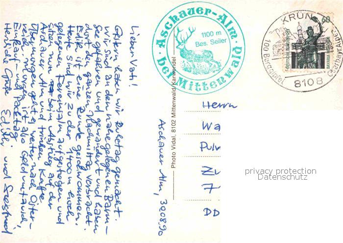 72783361 alte Postkarte Mittenwald Bayern Aschaueralm Schafe postalisch gelaufen Erhaltung siehe scans [FriedD77] KatCode: 11110009180123