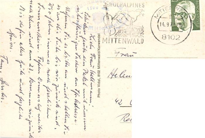73880833 alte Postkarte Mittenwald Bayern Aschaueralm postalisch gelaufen Erhaltung siehe scans [WerneD78] KatCode: 11110009180123