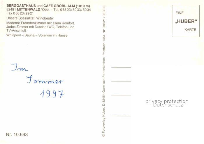 72913758 Mittenwald Bayern Bergasthaus und Cafe Groebl-Alm postalisch nicht gelaufen Erhaltung siehe scans [LiesaD40] KatCode: 11110009180123