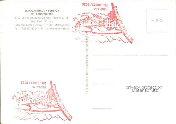 72478478 Mittenwald Bayern Berggasthaus Pension Wildensee Huette Teilansichten postalisch nicht gelaufen Erhaltung siehe scans KatCode: 11110009180123