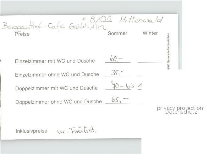 71921079 Mittenwald Bayern Berggasthof Groebl Alm Details postalisch nicht gelaufen Erhaltung siehe scans KatCode: 11110009180123