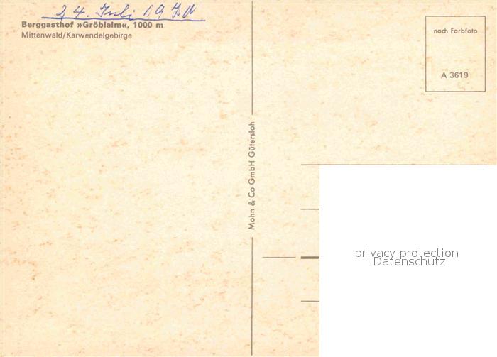 72840282 Mittenwald Bayern Berggasthof Groeblalm Terrasse postalisch nicht gelaufen Erhaltung siehe scans [WerneD78] KatCode: 11110009180123
