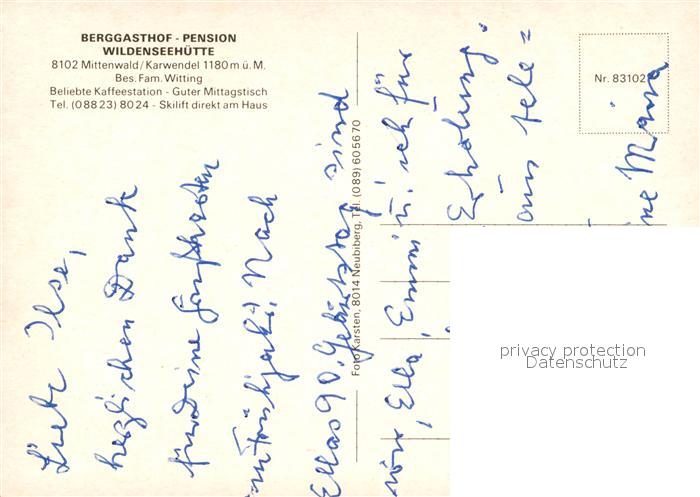 73079242 Mittenwald Bayern Berggasthof Wildenseehuette postalisch nicht gelaufen Erhaltung siehe scans [KathaD81] KatCode: 11110009180123