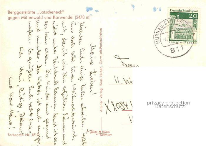 72717610 alte Postkarte Mittenwald Bayern Berggaststaette Latscheneck im Karwendel postalisch gelaufen Erhaltung siehe scans [LiesaD40] KatCode: 11110009180123