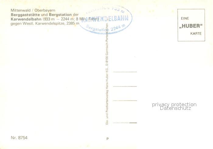 73634370 Mittenwald Bayern Berggaststaette und Bergstation Karwendelbahn Gebirgspanorama Huber Karte Nr 8754 postalisch nicht gelaufen Erhaltung siehe scans [FriedD77] KatCode: 11110009180123