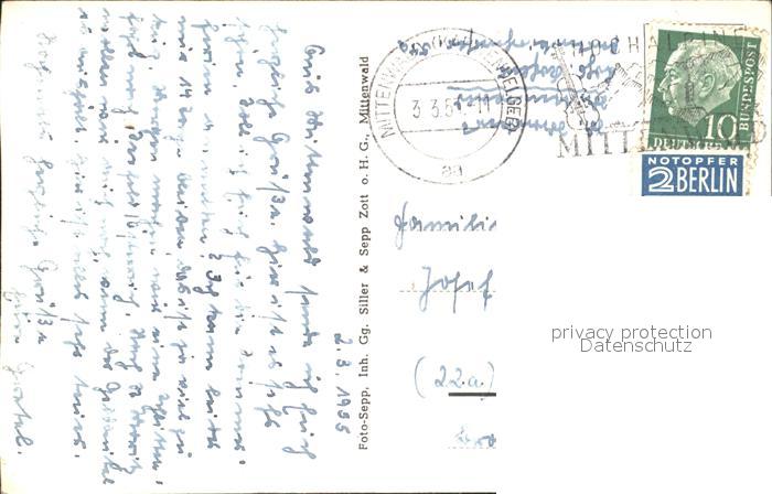 72073999 alte Postkarte Mittenwald Bayern Blick gegen Wetterstein Winterpanorama postalisch gelaufen KatCode: 11110009180123