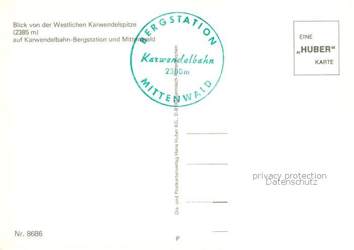 72991524 Mittenwald Bayern Blick von Karwendelspitze auf Karwendelbahn-Bergstation postalisch nicht gelaufen Erhaltung siehe scans [LiesaD40] KatCode: 11110009180123