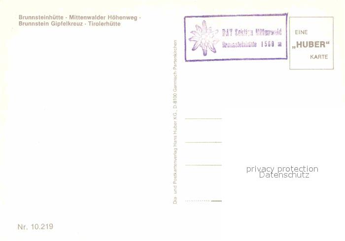72837367 Mittenwald Bayern Brunnsteinhuette Gipfelkreuz Tirolerhuette postalisch nicht gelaufen Erhaltung siehe scans [NatalD47] KatCode: 11110009180123