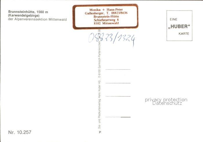 72554659 Mittenwald Bayern Brunnsteinhuette Karwendelgebirge postalisch nicht gelaufen Erhaltung siehe scans [AntonD74] KatCode: 11110009180123
