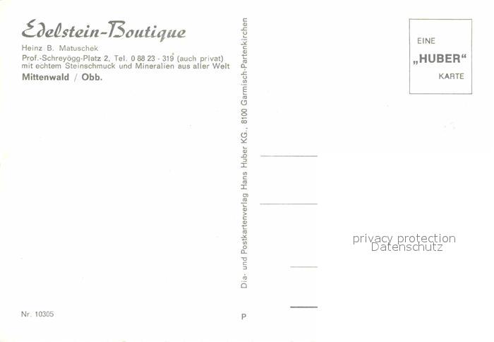 72784620 Mittenwald Bayern Edelstein Boutique postalisch nicht gelaufen Erhaltung siehe scans [LiesaD40] KatCode: 11110009180123