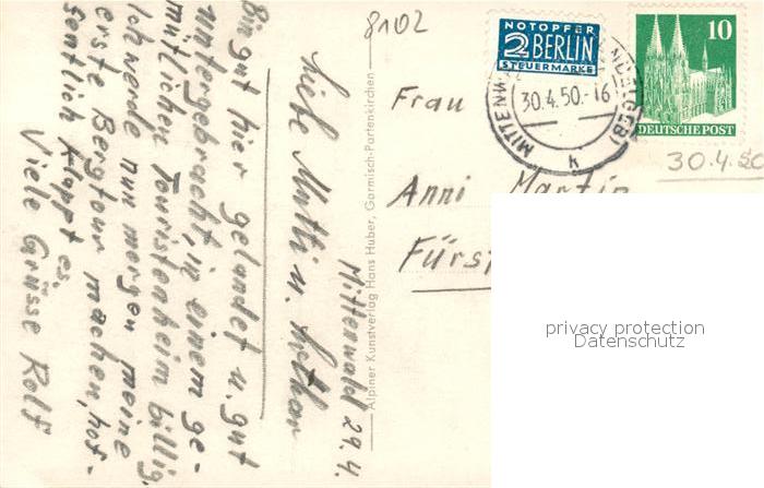 73143038 alte Postkarte Mittenwald Bayern Ev Kirche mit Wettersteinspitze Winterlandschaft Alpen postalisch gelaufen Erhaltung siehe scans [FriedD77] KatCode: 11110009180123