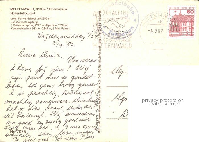 72377567 alte Postkarte Mittenwald Bayern Fliegeraufnahme Krawendelgebierge Krawendelbahn postalisch gelaufen Erhaltung siehe scans KatCode: 11110009180123