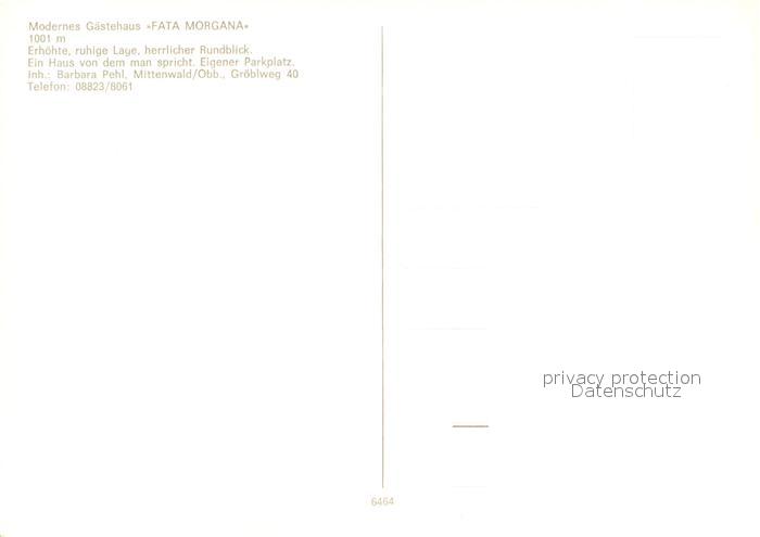 73722322 Mittenwald Bayern Gaestehaus Fata Morgana Teilansichten Aussen postalisch nicht gelaufen Erhaltung siehe scans [LiesaD40] KatCode: 11110009180123