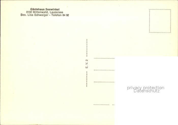 72465085 Mittenwald Bayern Gaestehaus Seewinkel postalisch nicht gelaufen Erhaltung siehe scans KatCode: 11110009180123