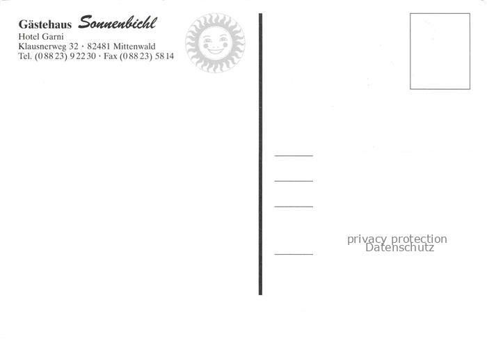 74005646 MITTENWALD Bayern Gaestehaus Sonnenbichl postalisch nicht gelaufen Erhaltung siehe scans [WerneD78] KatCode: 11110009180123