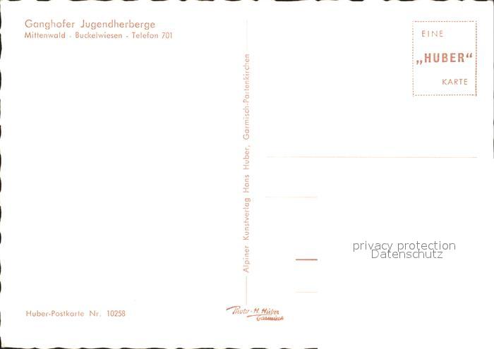 72076791 Mittenwald Bayern Ganghofer Jugendherberge Buckelwiesen postalisch nicht gelaufen Erhaltung siehe scans KatCode: 11110009180123