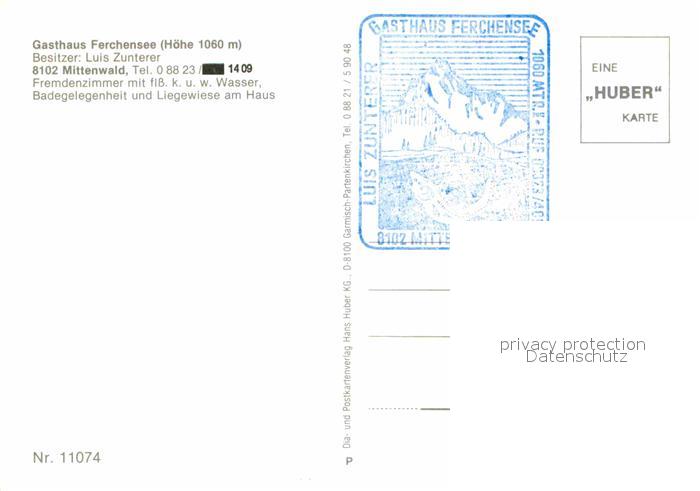72860205 Mittenwald Bayern Gasthaus Ferchensee postalisch nicht gelaufen Erhaltung siehe scans [NatalD47] KatCode: 11110009180123