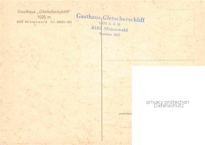 72862540 Mittenwald Bayern Gasthaus Gletscherschliff Alpen postalisch nicht gelaufen Erhaltung siehe scans [FriedD77] KatCode: 11110009180123