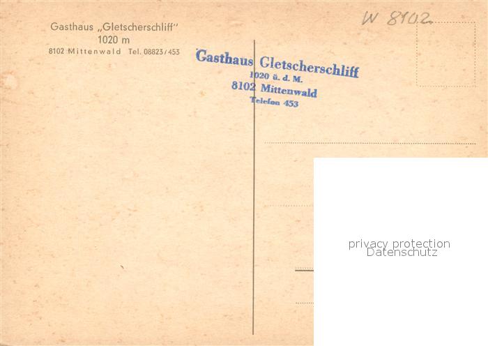 73129347 Mittenwald Bayern Gasthaus Gletscherschliff postalisch nicht gelaufen Erhaltung siehe scans [LiesaD40] KatCode: 11110009180123