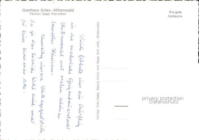 71940236 Mittenwald Bayern Gasthaus Gries postalisch nicht gelaufen Erhaltung siehe scans KatCode: 11110009180123