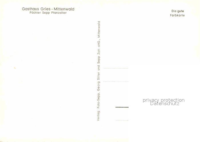 72902923 Mittenwald Bayern Gasthaus Gries postalisch nicht gelaufen Erhaltung siehe scans [FriedD77] KatCode: 11110009180123