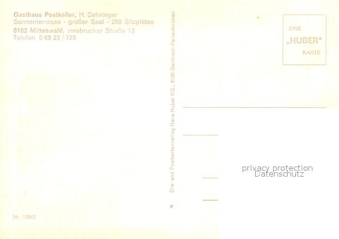 72981579 Mittenwald Bayern Gasthaus Postkeller H. Salminger postalisch nicht gelaufen Erhaltung siehe scans [LiesaD40] KatCode: 11110009180123