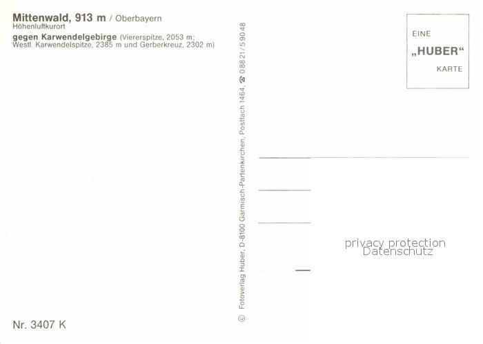 72743720 Mittenwald Bayern gegen Karwendelgebirge Gerberkreuz postalisch nicht gelaufen Erhaltung siehe scans [LiesaD40] KatCode: 11110009180123