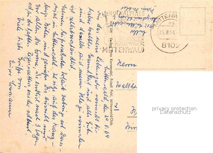 72743179 alte Postkarte Mittenwald Bayern Gesamtansicht mit Alpenpanorama Ortspartie an der Kirche postalisch gelaufen Erhaltung siehe scans [FriedD77] KatCode: 11110009180123
