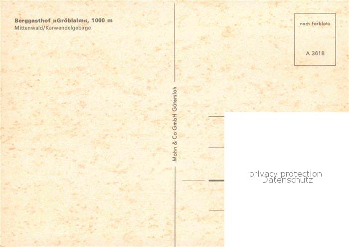 72699054 Mittenwald Bayern Groebalm Karwendel postalisch nicht gelaufen Erhaltung siehe scans [KathaD79] KatCode: 11110009180123