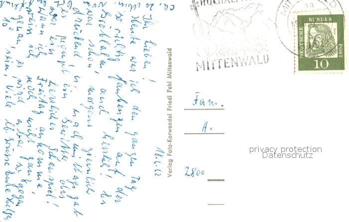 73335339 alte Postkarte Mittenwald Bayern Groeblalm mit Wetterstein postalisch gelaufen Erhaltung siehe scans [FriedD77] KatCode: 11110009180123