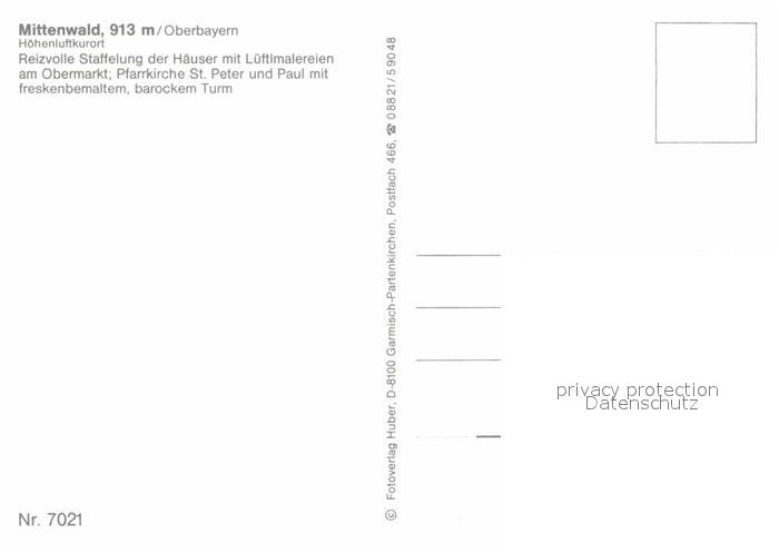 72641281 Mittenwald Bayern Haeuser am Obermarkt Kirche Hoehenluftkurort postalisch nicht gelaufen Erhaltung siehe scans [FriedD77] KatCode: 11110009180123