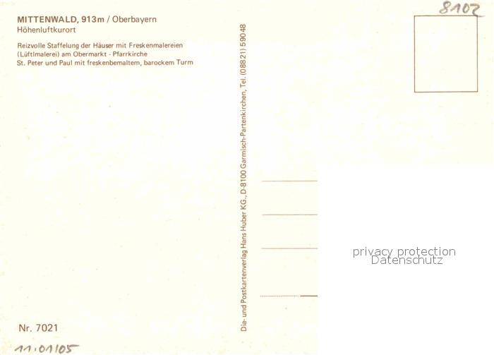 72912377 Mittenwald Bayern Hauptstrasse Obermarkt Pfarrkirche postalisch nicht gelaufen Erhaltung siehe scans [FriedD77] KatCode: 11110009180123