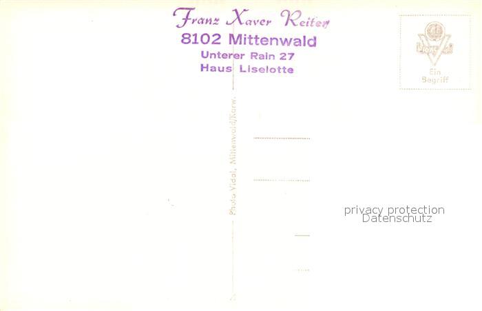 32980118 Mittenwald Bayern Haus Lieselotte postalisch nicht gelaufen Erhaltung siehe scans [NatalD47] KatCode: 11110009180123