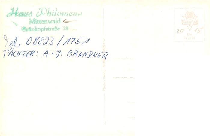 73890456 Mittenwald Bayern Haus Philomena postalisch nicht gelaufen Erhaltung siehe scans [FriedD77] KatCode: 11110009180123