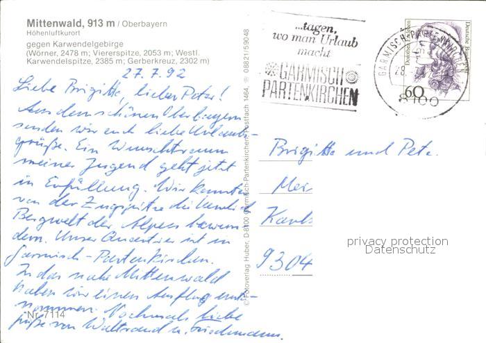 72370277 alte Postkarte Mittenwald Bayern Hohenluftkurort Karwendelgebirge postalisch gelaufen Erhaltung siehe scans KatCode: 11110009180123