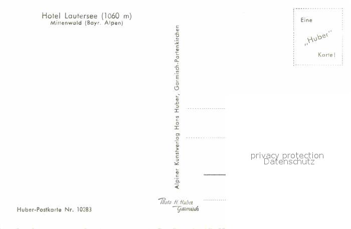 72794180 Mittenwald Bayern Hotel Lautersee Karwendel postalisch nicht gelaufen Erhaltung siehe scans [LiesaD40] KatCode: 11110009180123