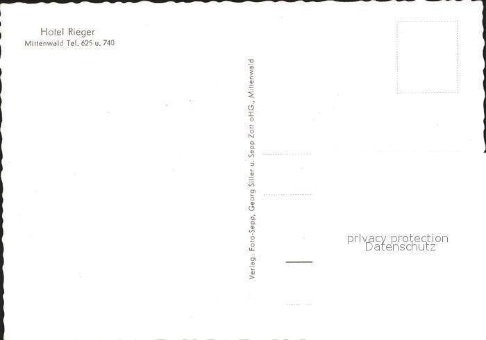 71932277 Mittenwald Bayern Hotel Rieger postalisch nicht gelaufen Erhaltung siehe scans KatCode: 11110009180123