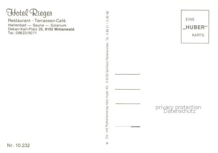 73615869 Mittenwald Bayern Hotel Rieger Terrassen Cafe postalisch nicht gelaufen Erhaltung siehe scans [WerneD78] KatCode: 11110009180123