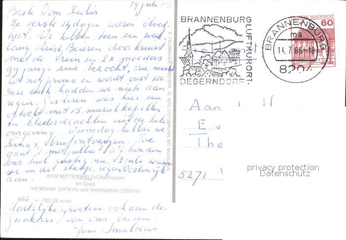 72464784 alte Postkarte Mittenwald Bayern Im Gries mit Womer postalisch gelaufen Erhaltung siehe scans KatCode: 11110009180123