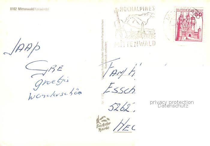 73313756 alte Postkarte Mittenwald Bayern Karwendel Kirchenpartie postalisch gelaufen Erhaltung siehe scans [LiesaD40] KatCode: 11110009180123