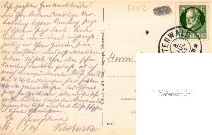 72794995 alte Postkarte Mittenwald Bayern Karwendel postalisch gelaufen Erhaltung siehe scans [AndreD76] KatCode: 11110009180123