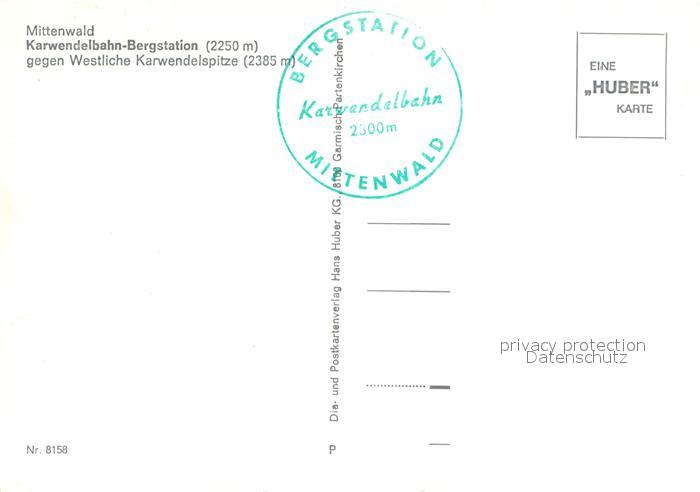 72986738 Mittenwald Bayern Karwendelbahn Bergstation gegen Karwendelspitze postalisch nicht gelaufen Erhaltung siehe scans [LiesaD40] KatCode: 11110009180123