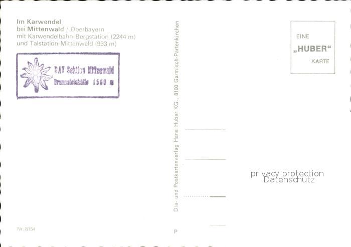 72434402 Mittenwald Bayern Karwendelbahn Hoehenwege Karwendelgebiet Gebirgspanorama Huber Karte Nr 8154 postalisch nicht gelaufen Erhaltung siehe scans KatCode: 11110009180123