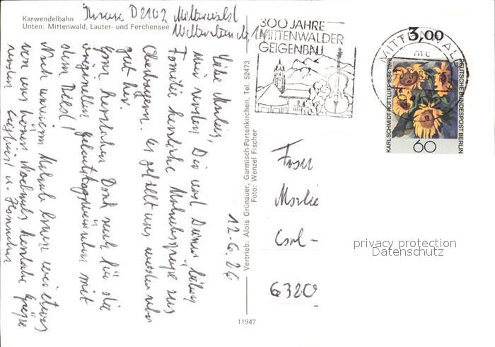 alte Postkarte Mittenwald Bayern Karwendelbahn Lautersee Ferchensee Alpenpanorama postalisch gelaufen Erhaltung siehe scans