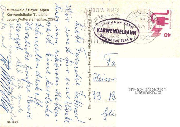 72764468 alte Postkarte Mittenwald Bayern Karwendelbahn Talstation postalisch gelaufen Erhaltung siehe scans [AndreD76] KatCode: 11110009180123