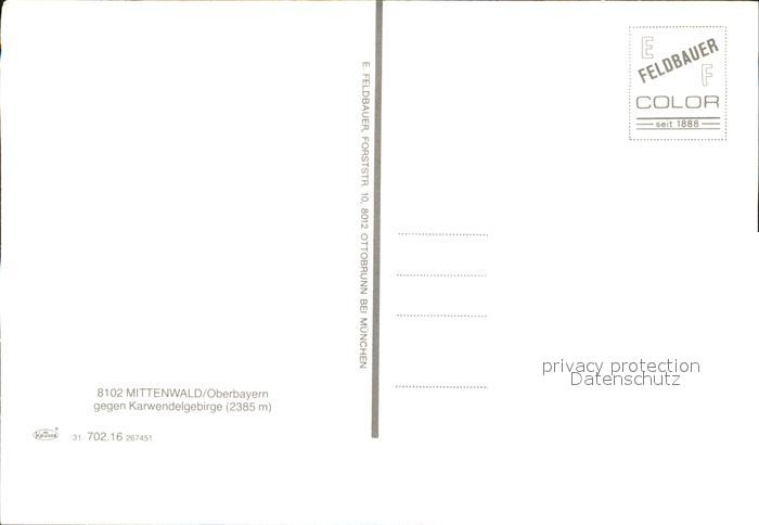 72557757 Mittenwald Bayern Karwendelgebirge postalisch nicht gelaufen Erhaltung siehe scans [KathaD79] KatCode: 11110009180123